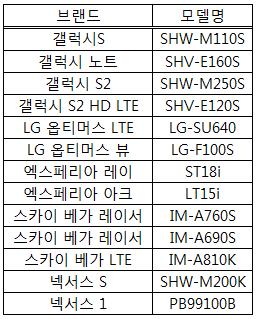 - 제공 단말 기준 : 블랙리스트 단말기 + SKT핸드폰(2012년 5월 이전, KT 핸드폰 제외) 대상의 스마트 폰